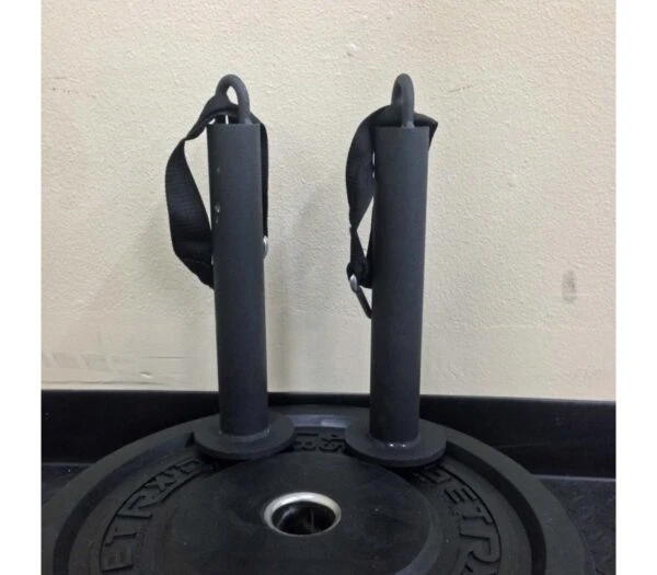 Load any 2″ Olympic Size Plate or Bumper onto the pin for weight. Then add either the light bulb grip, pipe bomb, or dog bone depending on what you want to hold onto.